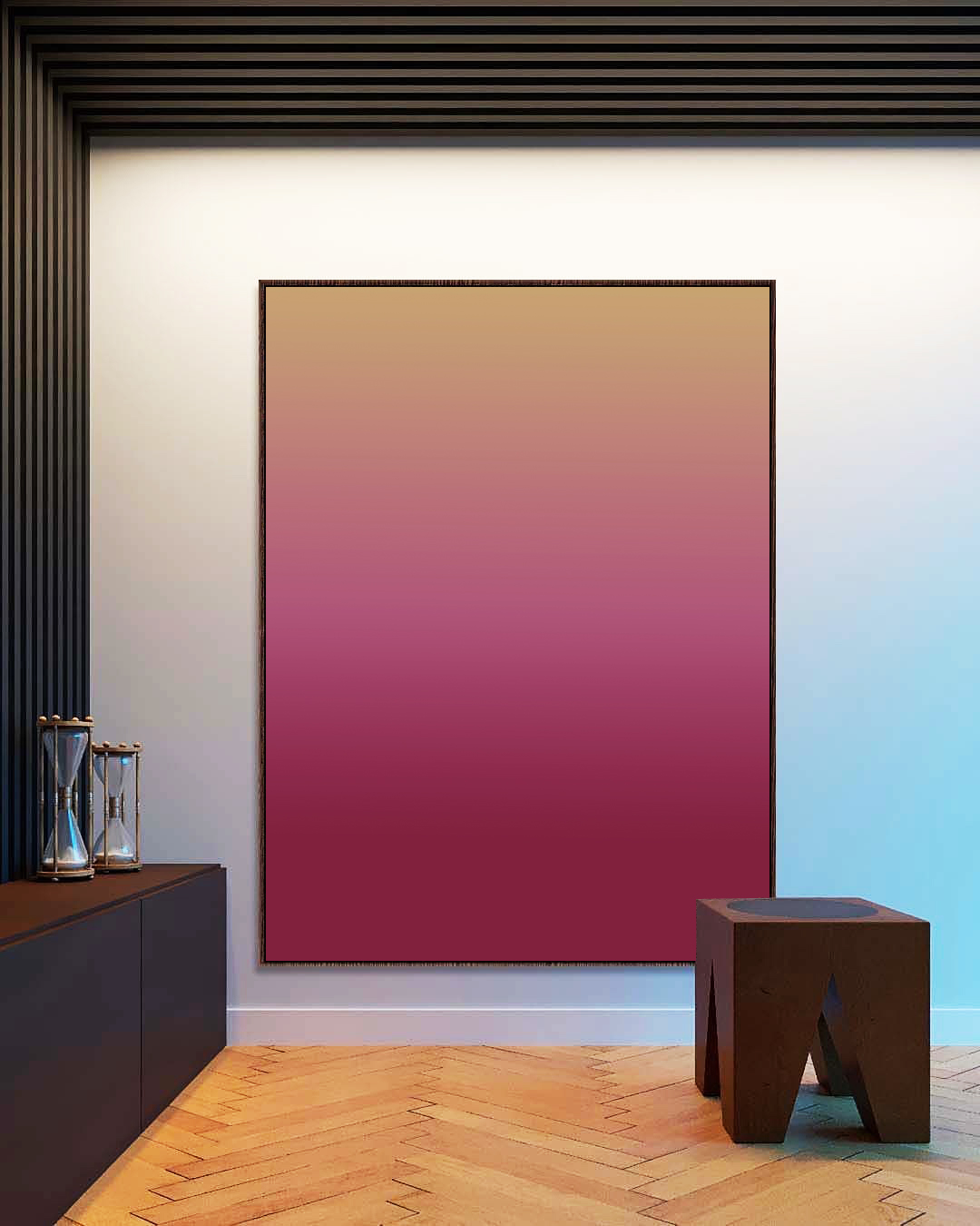 Degradê suave entre rosa framboesa e bege dourado, trazendo calor, elegância e sensação de aconchego. Perfeito para sala, quarto, hall de entrada, escritório ou consultório. Combina com decoração moderna, minimalista, escandinava e contemporânea.