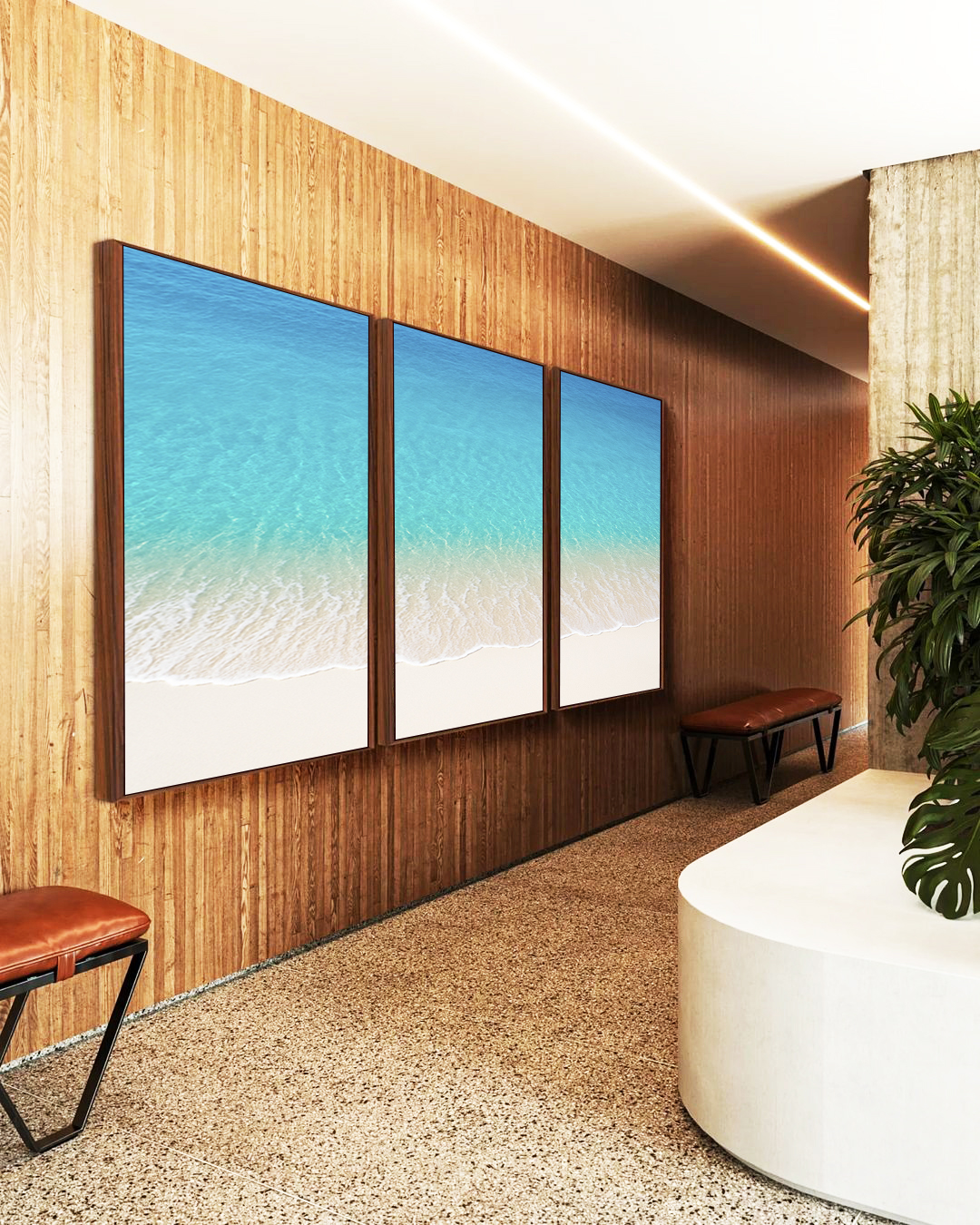 Com visual leve e elegante, este Trio de Quadros de praia e mar azul cristalino transforma o ambiente com frescor e serenidade. Ideal para compor salas sofisticadas, quartos elegantes, escritórios modernos ou halls de entrada marcantes.