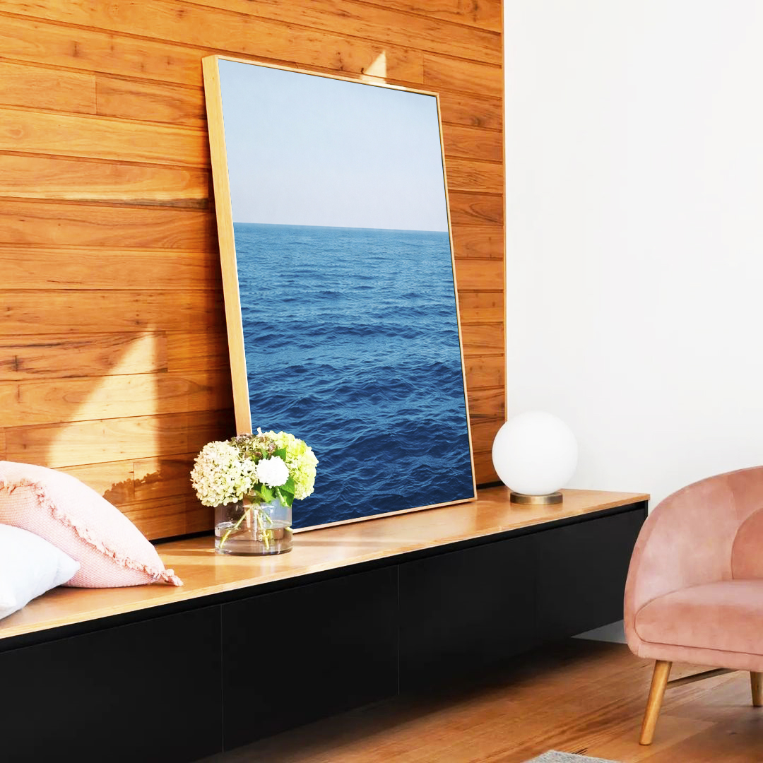 Suave e marcante, este Quadro Vertical de mar azul calmo e céu claro traz equilíbrio visual e conexão com a natureza, estética moderna e desejável. Ideal para compor salas sofisticadas, quartos elegantes ou escritórios modernos.