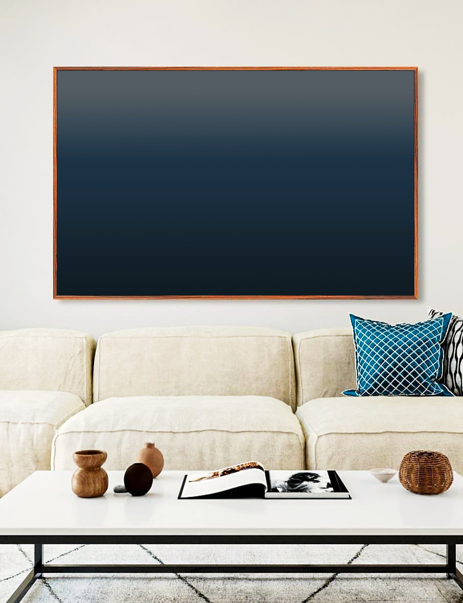 Degradê azul marinho profundo com transição suave e elegante, trazendo sofisticação e sensação de calma. Perfeito para salas e escritórios, criando um ambiente moderno, minimalista e acolhedor com tons escuros e refinados.