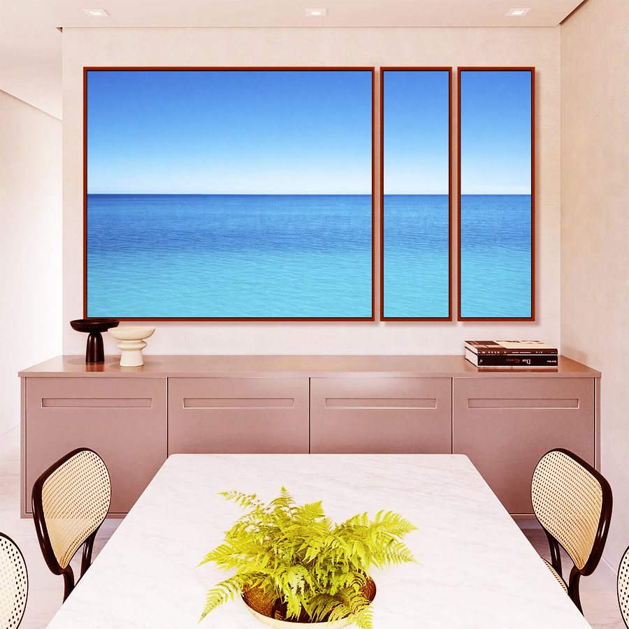 Leve e inspirador, este Trio de Quadros Estilizados retrata a natureza com mar azul sereno e céu claro limpo, trazendo harmonia moderna ao ambiente. A escolha ideal para salas elegantes, quartos estilosos ou escritórios profissionais.