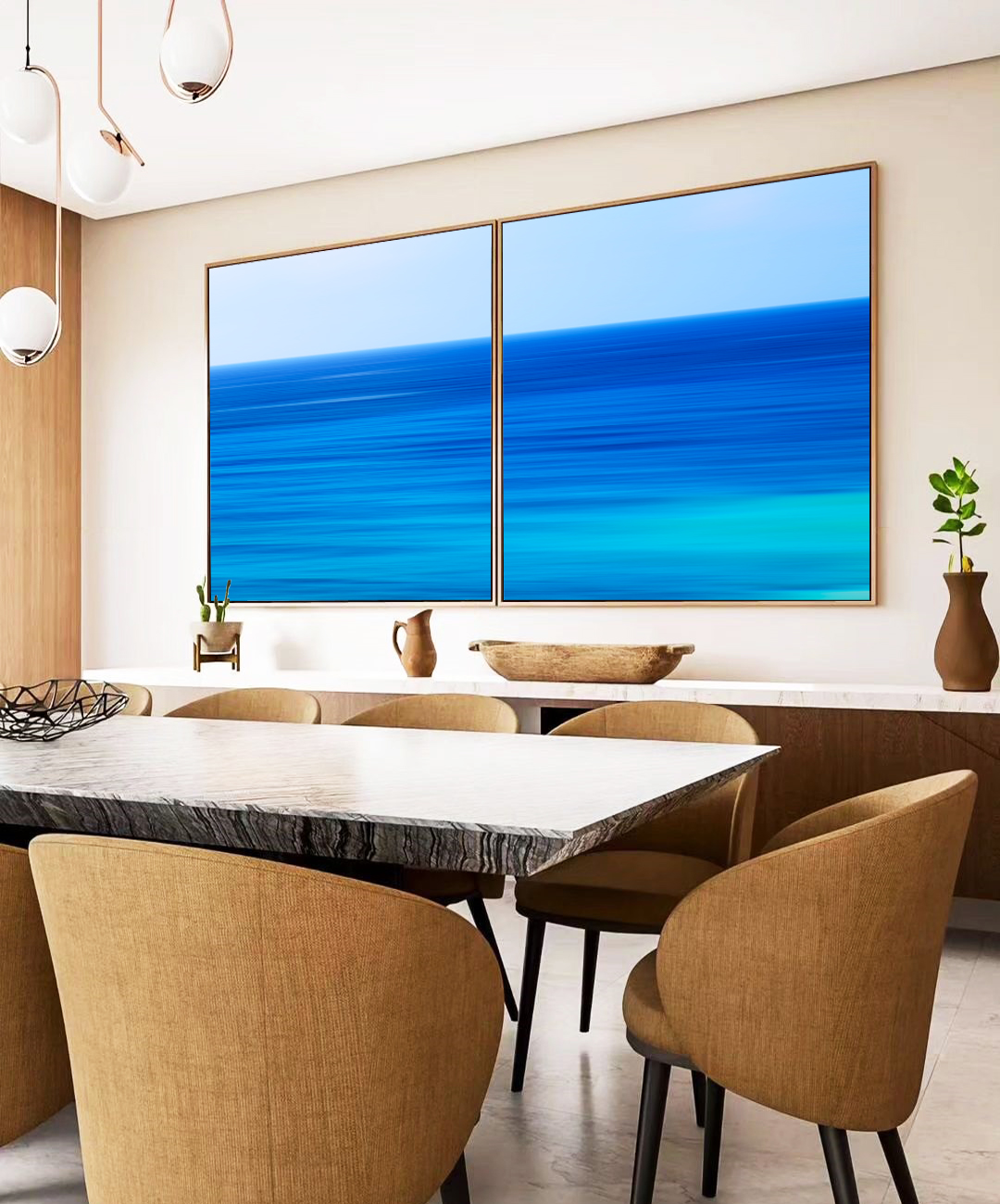 Duo de Quadros Quadrados Mar Calmo em Tons de Azul Canvas Com Moldura