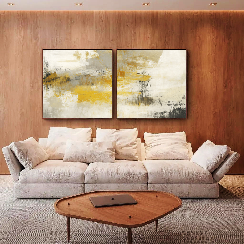 Com traços abstratos e tons de cinza e mostarda, este Duo de Quadros Quadrados transforma qualquer espaço com elegância e personalidade. A escolha certa para decorar sua sala de estar, quarto ou hall de entrada com arte, estilo e sofisticação. Marcante!
