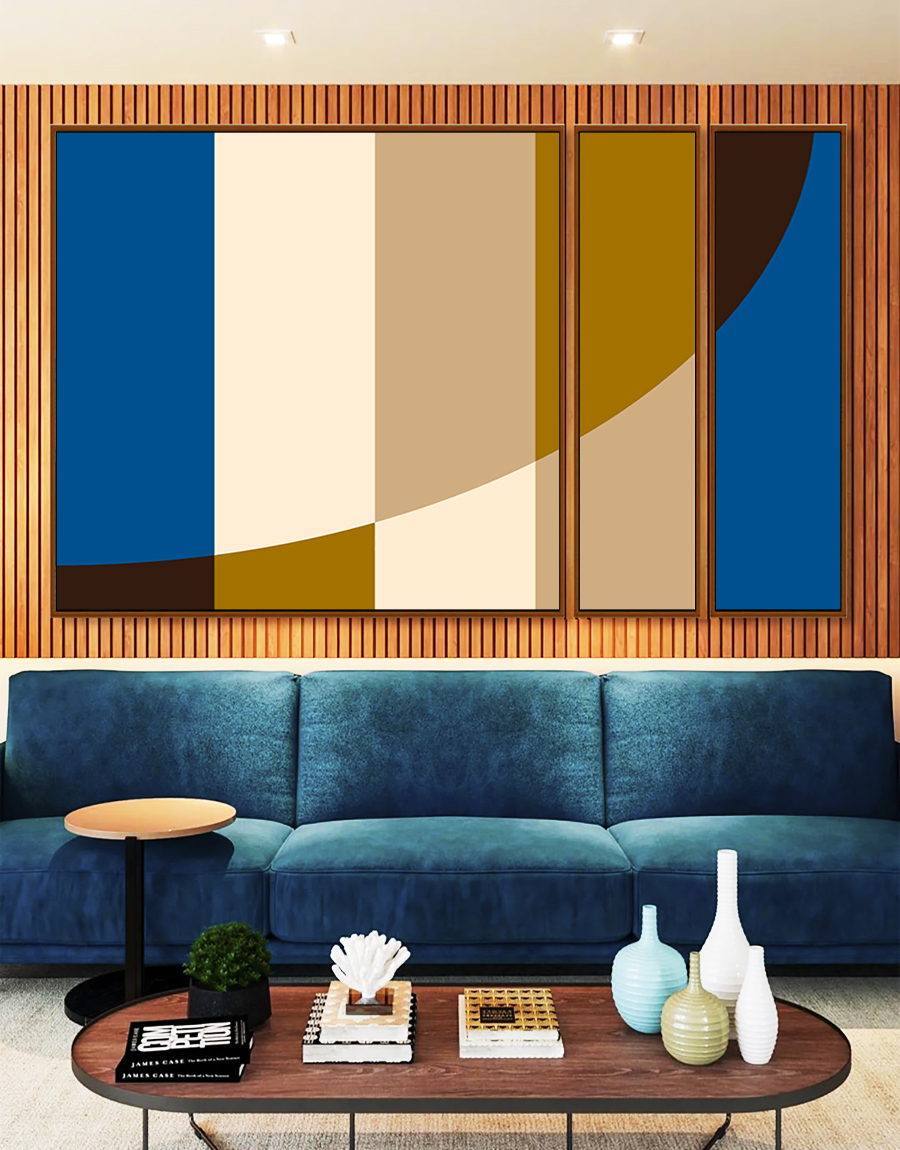 Este Trio de Quadros Estilizados combina formas geométricas e listras em azul e bege, transmitindo modernidade e sofisticação. A escolha ideal para decorar salas, quartos ou halls de entrada com estilo e personalidade. Formas e cores que inspiram.