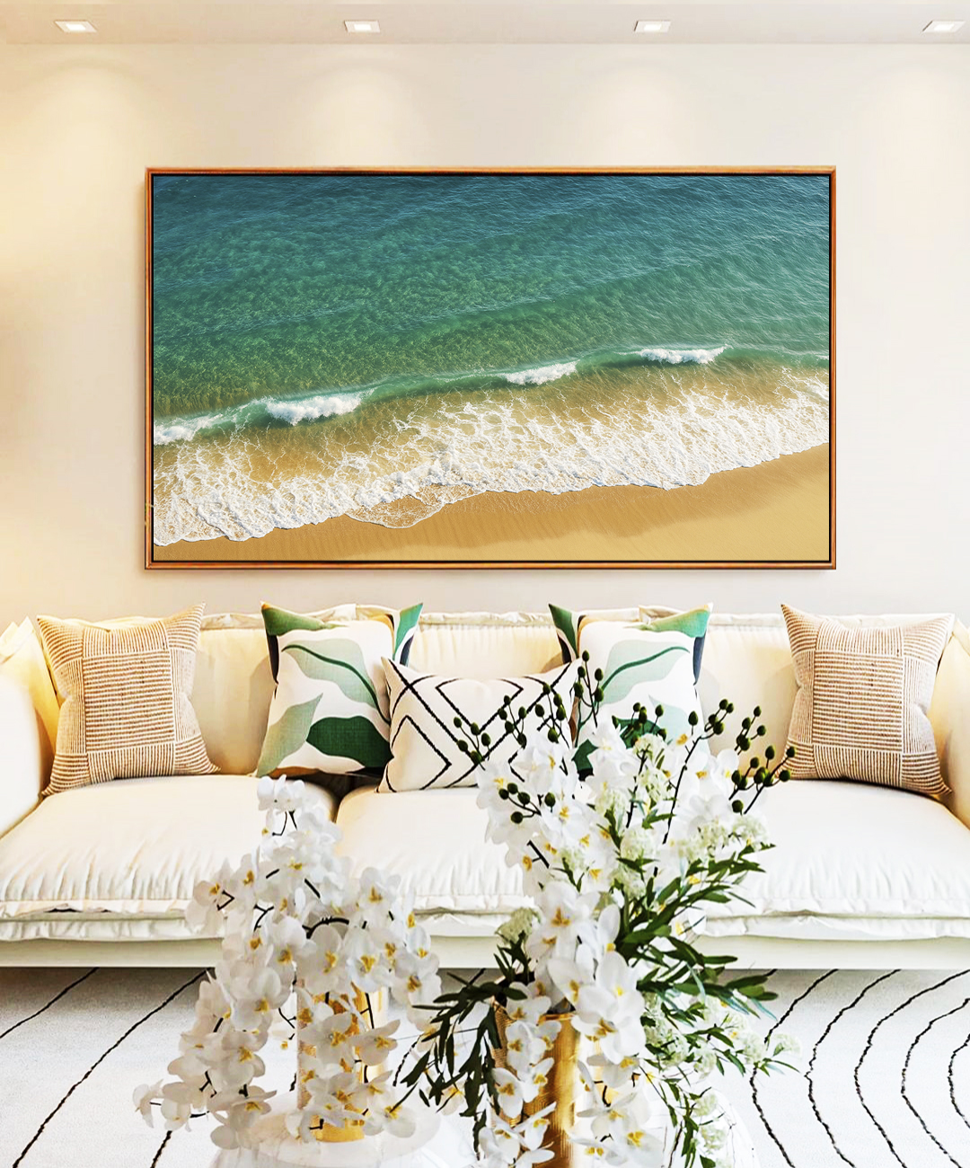 Calmo e luminoso, este Quadro Horizontal com mar turquesa e cenário natural cria um ponto focal leve e sofisticado. Ideal para compor salas amplas, quartos refinados, escritórios elegantes ou halls de entrada com presença visual.