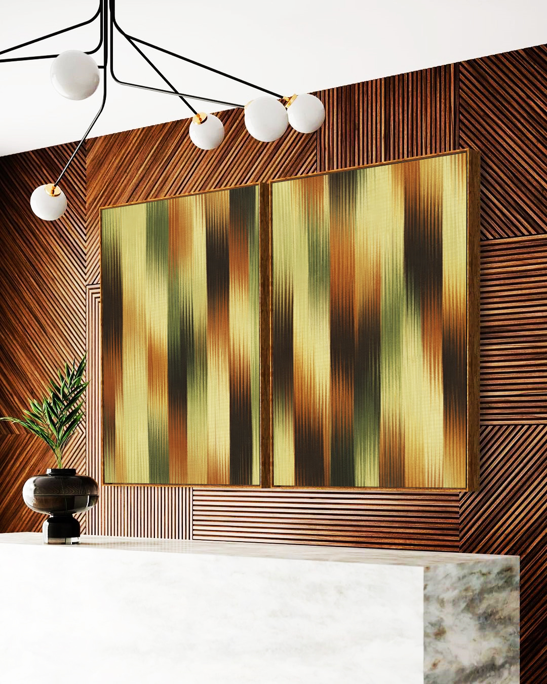 Sofisticado e harmonioso, este Duo de Quadros com listras em degradê verde, marrom e cobre traz equilíbrio contemporâneo e presença elegante ao ambiente. A escolha certa para salas elegantes, quartos tranquilos ou escritórios profissionais.