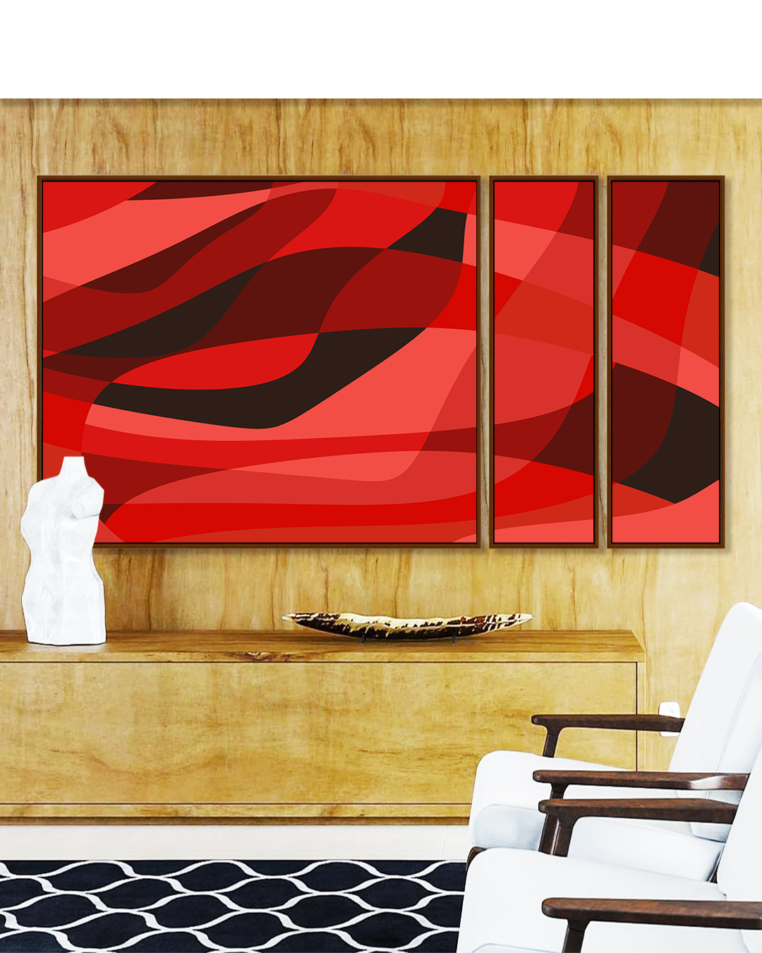 Com uma fusão elegante de vermelho e preto, este Trio de Quadros Estilizados oferece intensidade e charme contemporâneo.