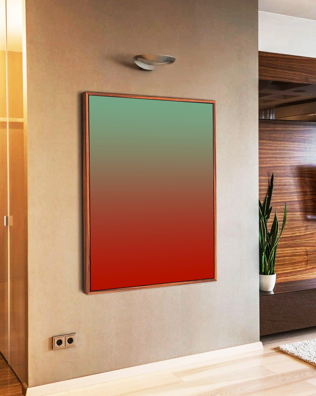 Degradê em verde turquesa e vermelho tijolo que cria contraste elegante e contemporâneo. Tons intensos e sofisticados valorizam a decoração com personalidade. Perfeito para salas, quartos e escritórios com estilo moderno.
