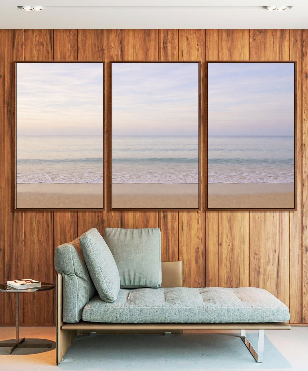 Harmonioso e luminoso, este Trio de Quadros de praia em azul prateado com céu claro lilás traz sensação de tranquilidade e requinte. Ideal para compor salas sofisticadas, quartos modernos, escritórios elegantes ou halls de entrada imponentes.