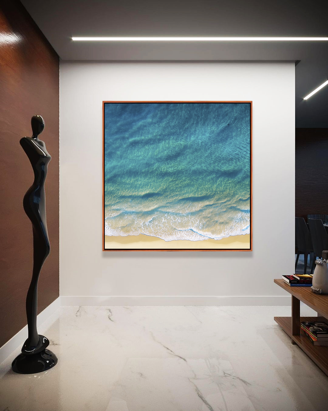 Com tons naturais e mar azul calmo, este Quadro Quadrado transforma o ambiente com frescor e sofisticação. Ideal para compor salas contemporâneas, quartos elegantes, escritórios profissionais ou halls de entrada marcantes.