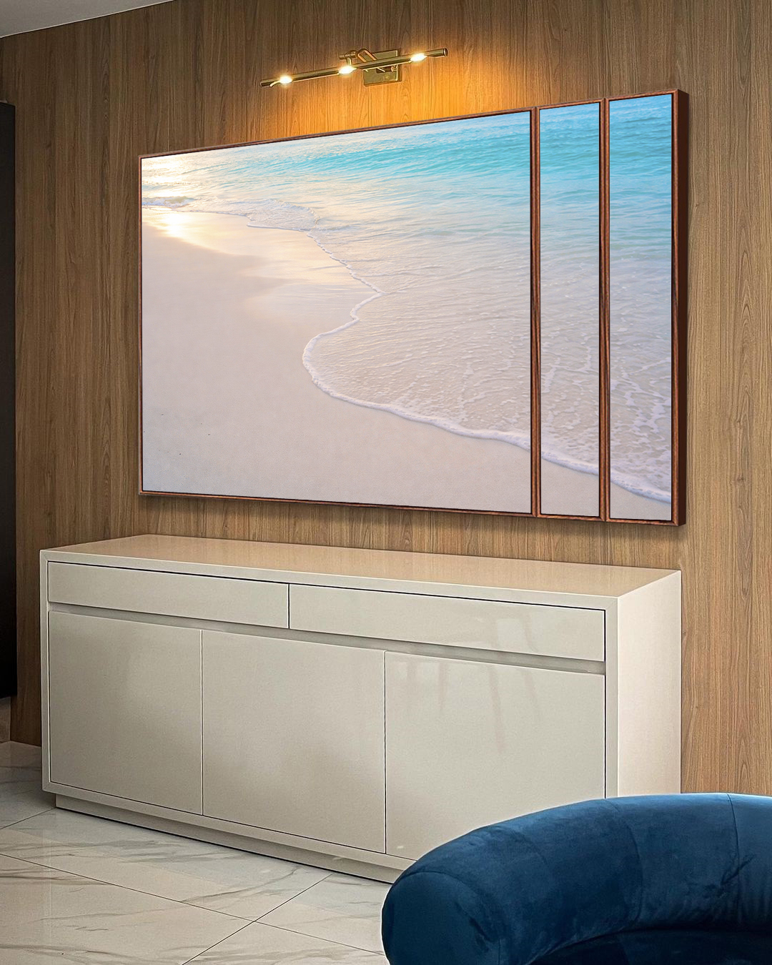 A beleza da praia em cores suaves e luminosas, transmitindo paz e aconchego. Um toque sofisticado para ambientes modernos, claros e cheios de leveza.