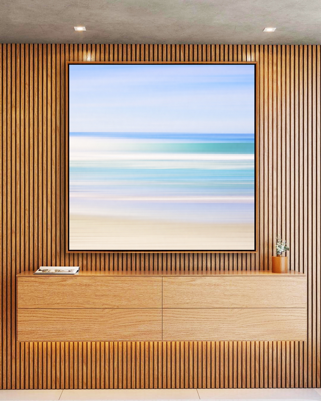 Este Quadro Quadrado traduz a fluidez do mar em tons turquesa sob um céu lilás suave, criando profundidade e tranquilidade visual. Ideal para decorar salas amplas, quartos acolhedores, escritórios modernos ou halls de entrada refinados.