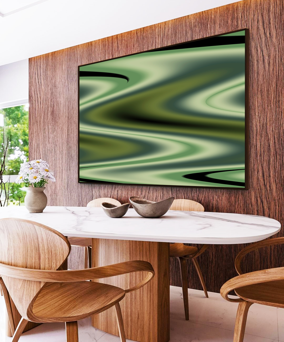 Este Quadro Horizontal abstrato em arte fluida pouring destaca tons de verde com movimento orgânico e sofisticado. A escolha ideal para salas elegantes, quartos refinados, escritórios contemporâneos ou halls de entrada com presença marcante.