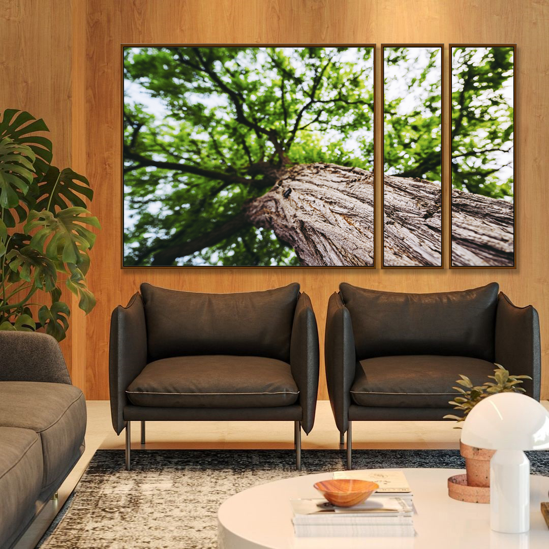 Torne seu espaço mais relaxante com este Trio de Quadros Estilizados de árvore com folhas verdes e céu claro. Ideal para salas e escritórios, criando uma atmosfera serena. Impressão premium em canvas com moldura sofisticada e durável.