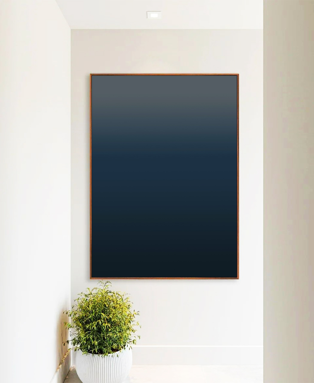 Degradê azul marinho profundo com transição suave e elegante, trazendo sofisticação e sensação de calma. Perfeito para salas e escritórios, criando um ambiente moderno, minimalista e acolhedor com tons escuros e refinados.