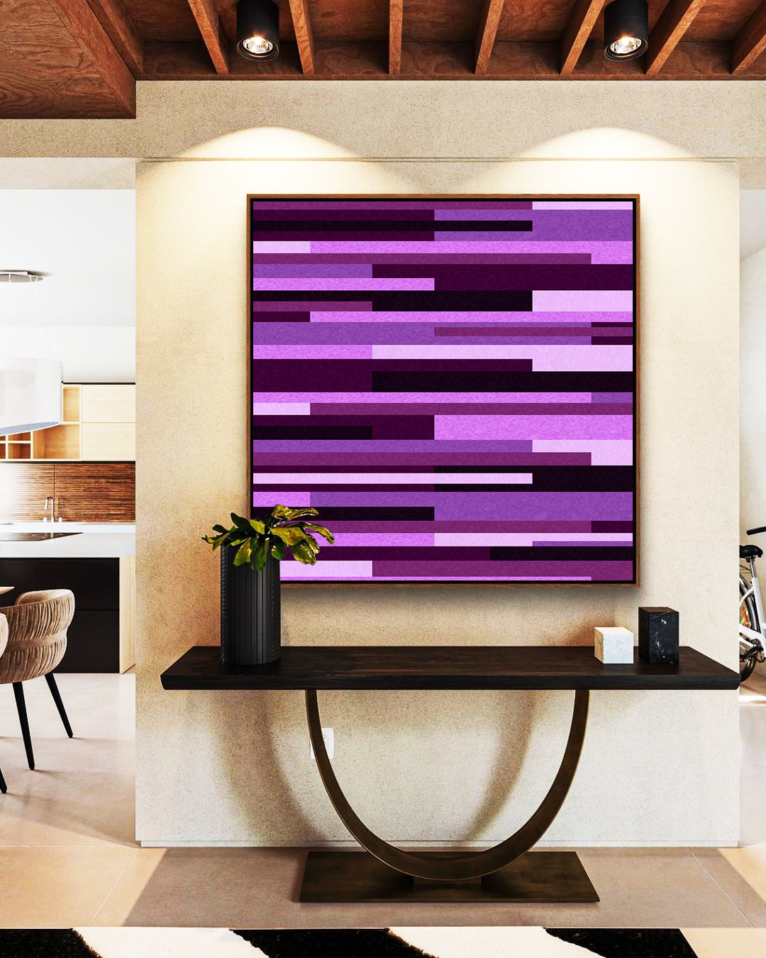 Este Quadro Quadrado combina tons de rosa, lilás e roxo em um mosaico geométrico cativante. A escolha certa para quem busca um toque contemporâneo e delicado na decoração de salas, quartos ou escritórios. Harmonia Visual Sofisticada!