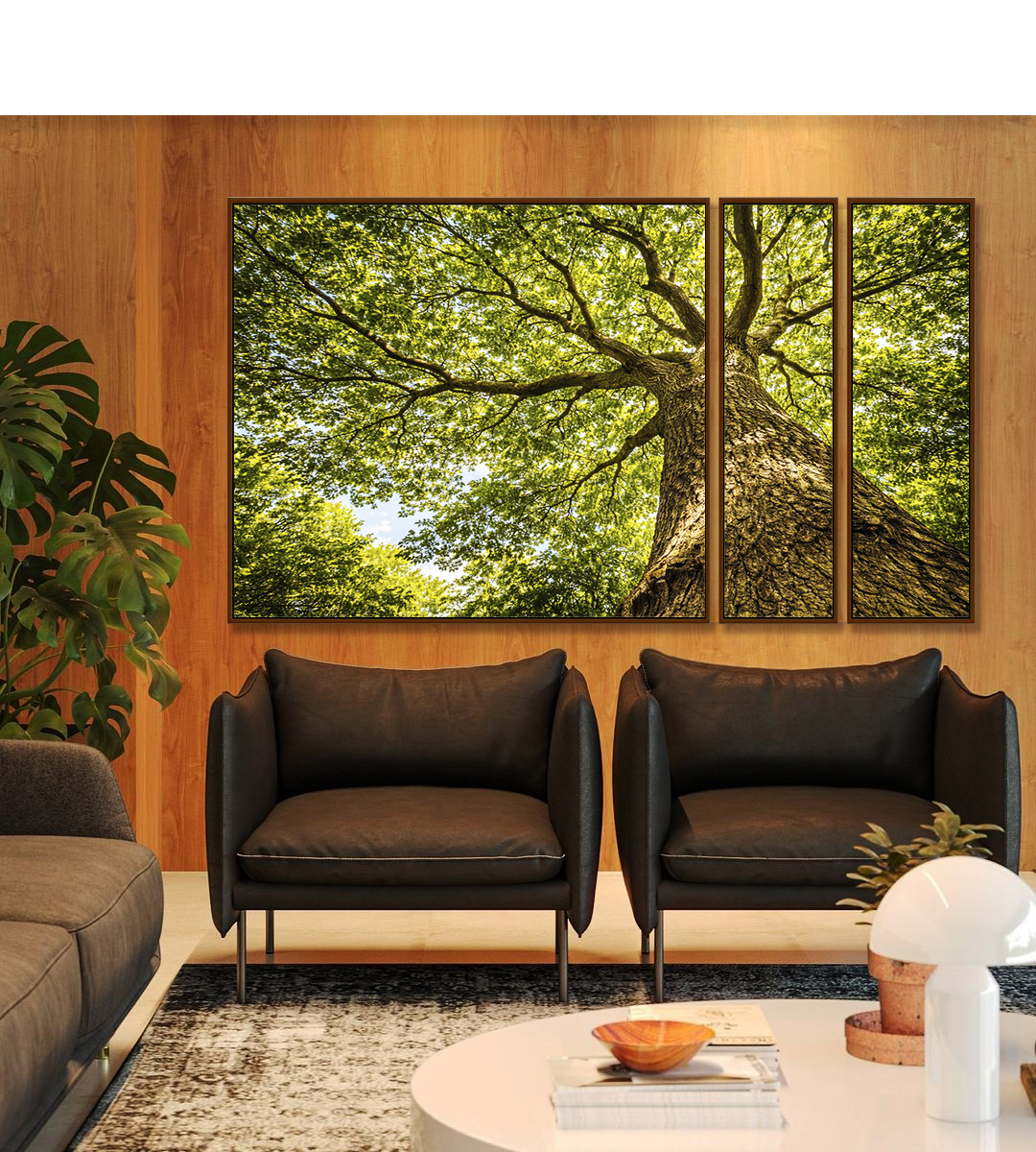 Folhas exuberantes e galhos delicados em uma paisagem cheia de vida e tranquilidade. Ideal para decorações modernas, naturais ou rústicas, com toque de bem-estar. Ideal Para seu Quarto, Sala, Hall ou Escritório.