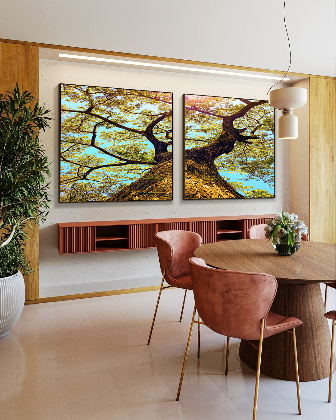 O contraste da Árvore e o Céu em tons turquesa tornam este Duo de Quadros Quadrados uma peça que transmite calma e beleza. A escolha certa para quem busca elegância natural em ambientes como sala, escritório ou quarto decorado com estilo. Belíssimo!