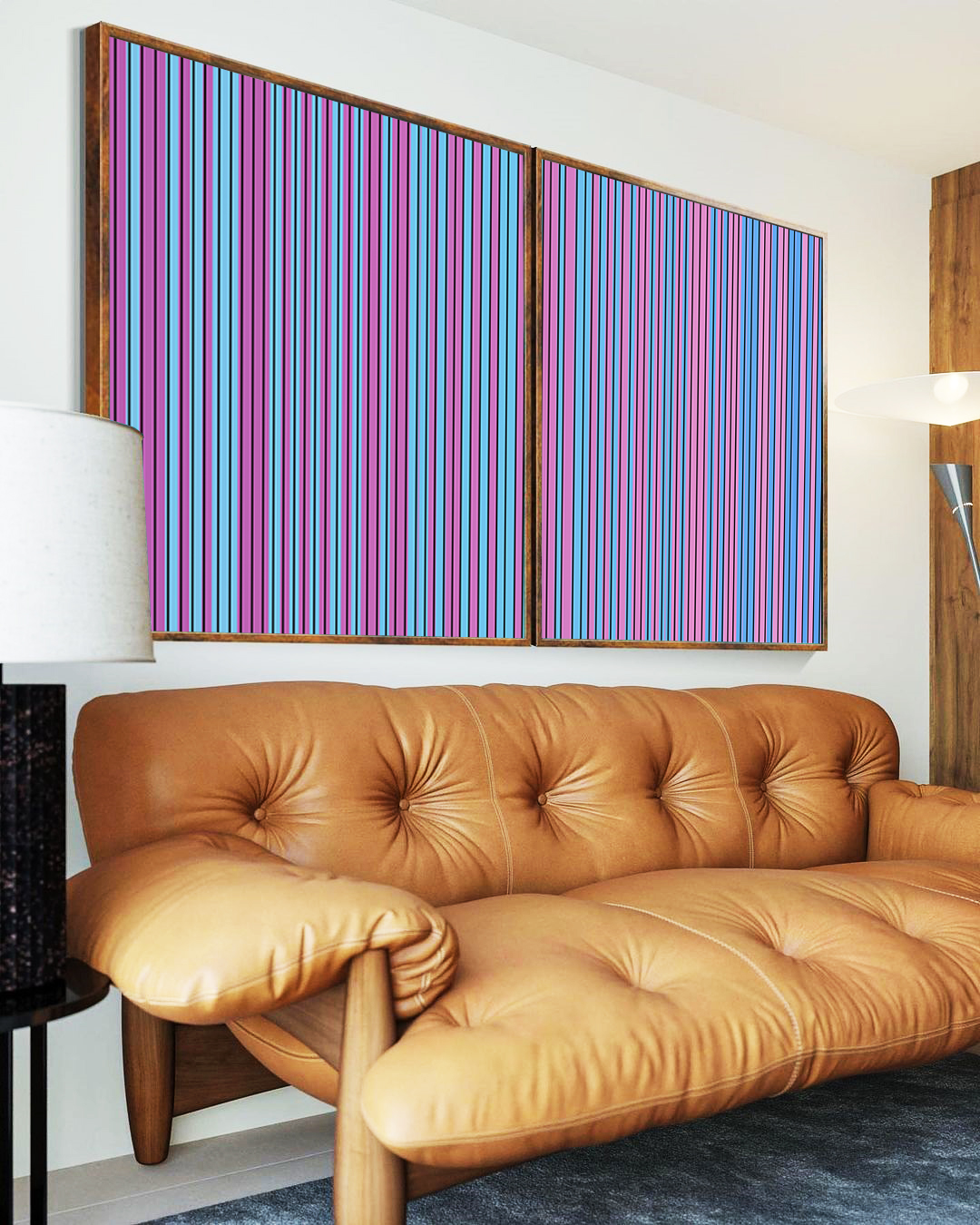 Elegante e moderno, este Duo de Quadros com listras em degradê azul e lilás cria um ponto focal delicado e sofisticado. Ideal para compor salas contemporâneas, quartos refinados, escritórios elegantes ou halls de entrada marcantes.