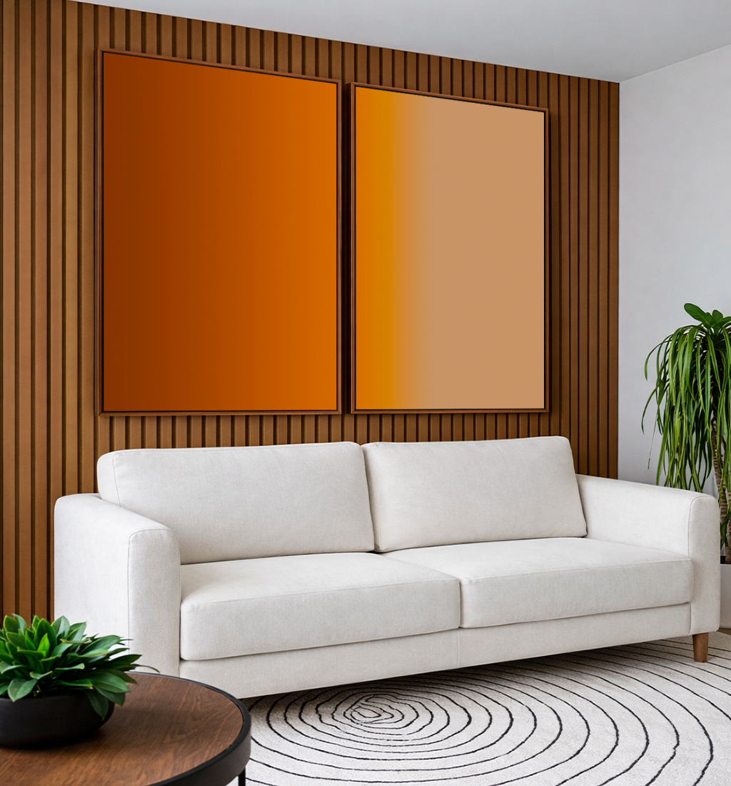 Tons de areia, bronze e cobre que trazem aconchego e sofisticação ao ambiente. Ideal para sala, quarto ou escritório, criando uma atmosfera moderna, quente e elegante. Lindíssimo!
