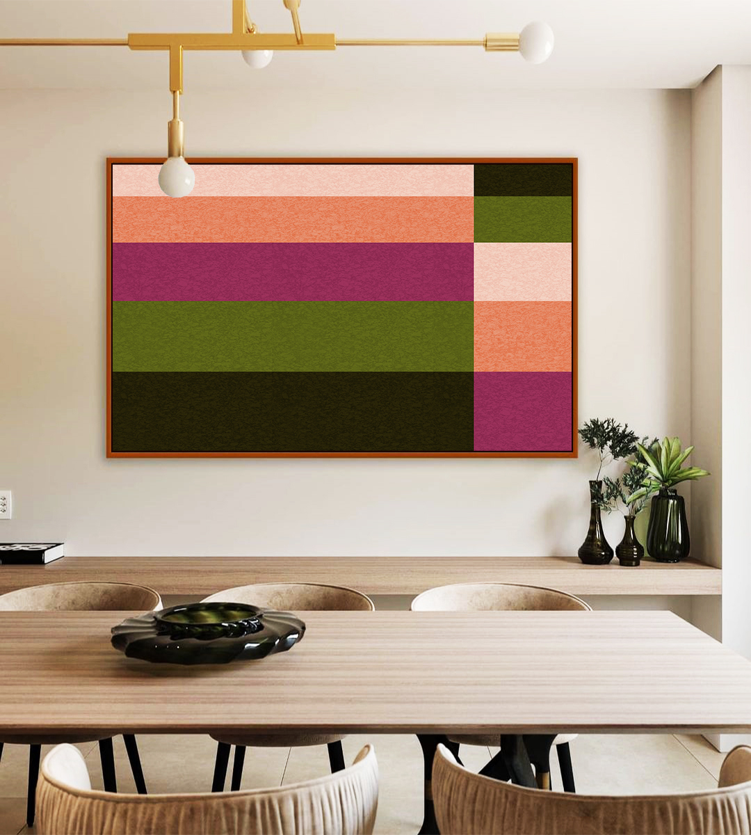 Com formas geométricas e cores harmoniosas, esta arte traz elegância e equilíbrio visual ao ambiente. Um Quadro Horizontal abstrato que é a escolha certa para destacar salas, quartos ou escritórios com um toque moderno e refinado.