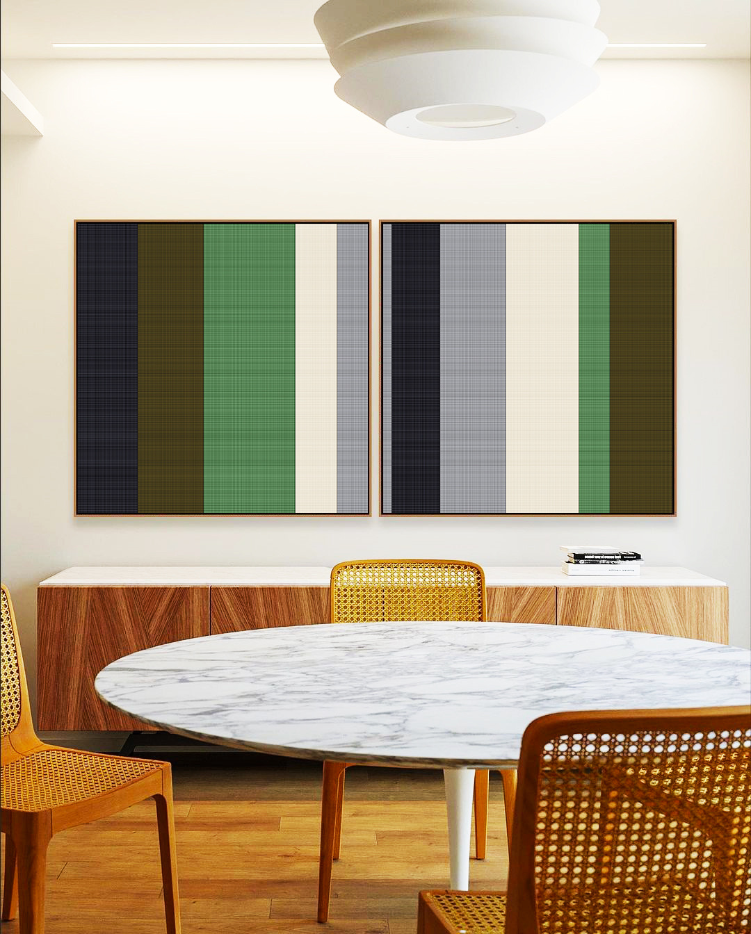 Com listras geométricas em tons de verde, cinza e branco, este Duo de Quadros Quadrados expressa equilíbrio e sofisticação. A escolha ideal para compor salas modernas, escritórios elegantes ou halls de entrada com personalidade e harmonia visual.