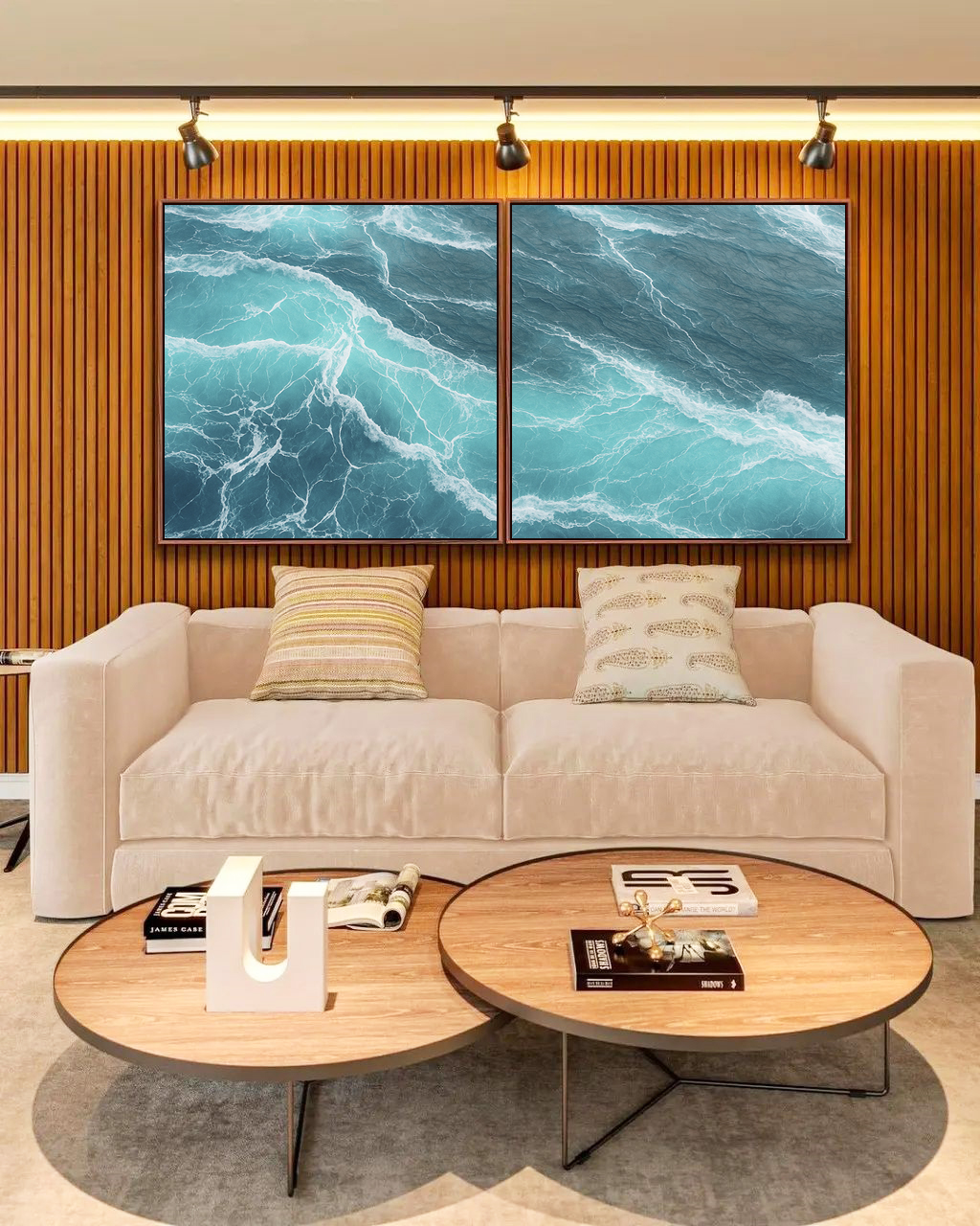 Duo de Quadros Quadrados com mar revolto em tons intensos de azul, transmitindo força, movimento e profundidade. A escolha ideal para salas, quartos, escritórios ou halls de entrada, criando uma atmosfera marcante, sofisticada e cheia de personalidade.