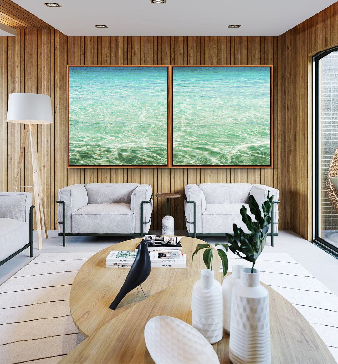 Com tons turquesa e reflexos cristalinos, este Duo de Quadros Quadrados transmite serenidade e frescor. Uma arte que desperta leveza e equilíbrio, perfeita para compor salas, quartos ou escritórios com estilo contemporâneo e atmosfera relaxante.