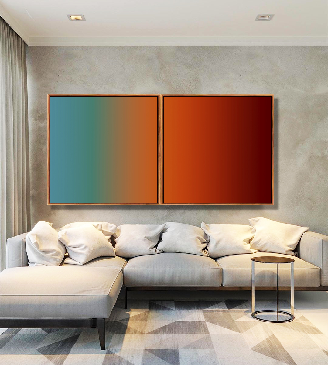Com tons sofisticados de azul petróleo, caramelo e bordô, este Duo de Quadros Quadrados Abstrato em degradê traz elegância e personalidade. A escolha ideal para salas, quartos ou escritórios que buscam arte moderna e estilo refinado. Belo e Marcante!