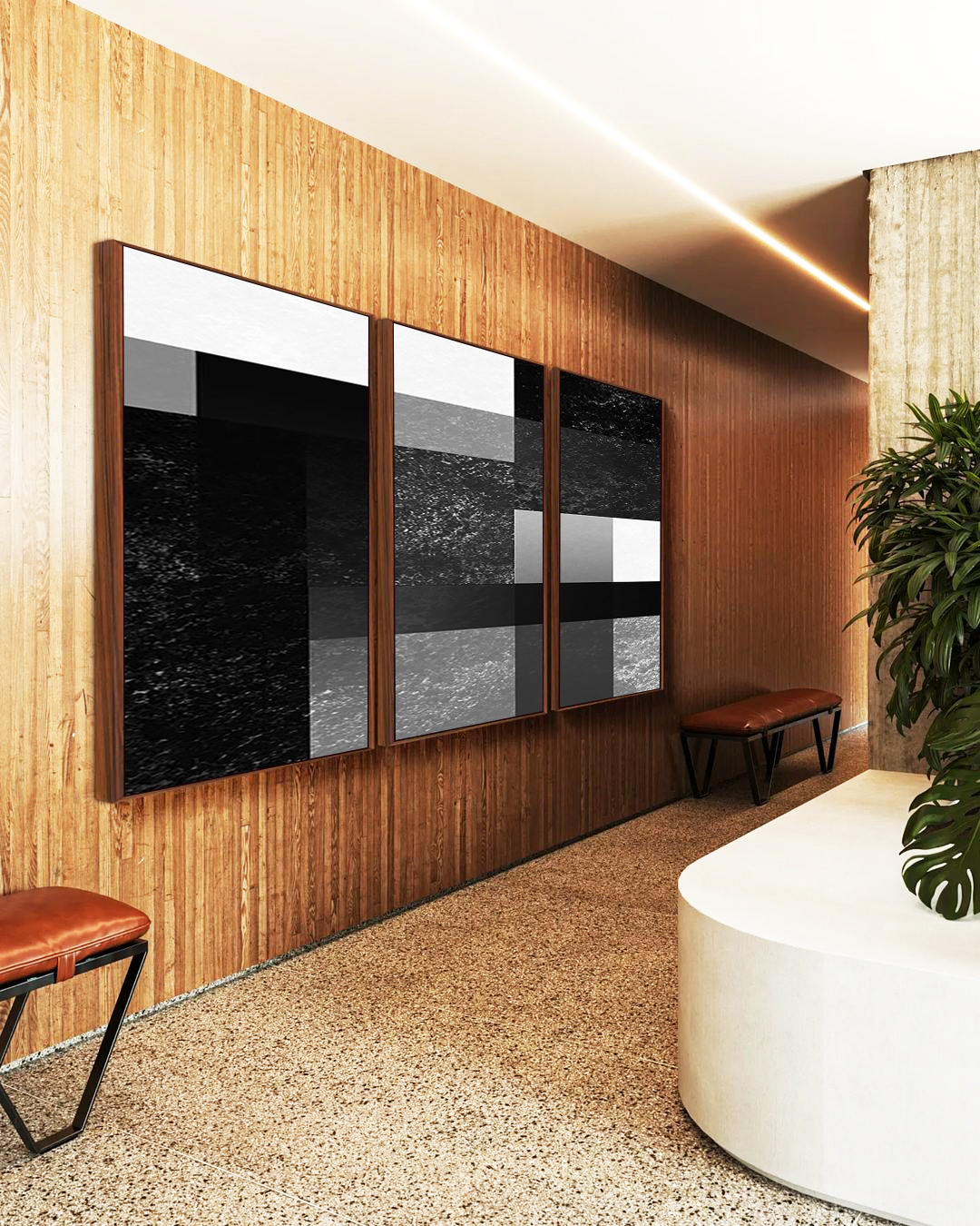 Elegância e equilíbrio definem este Trio de Quadros de composição geométrica em tons neutros. A escolha certa para transformar sua sala de estar, quarto ou escritório em um ambiente sofisticado, com arte contemporânea e personalidade.