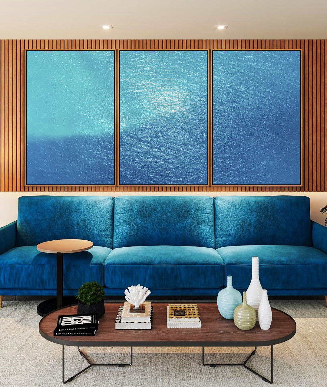 Profundo e expressivo, este Trio de Quadros retrata o mar alto em azul intenso com textura natural, criando impacto visual e movimento elegante. Ideal para valorizar salas amplas, quartos sofisticados ou escritórios profissionais.