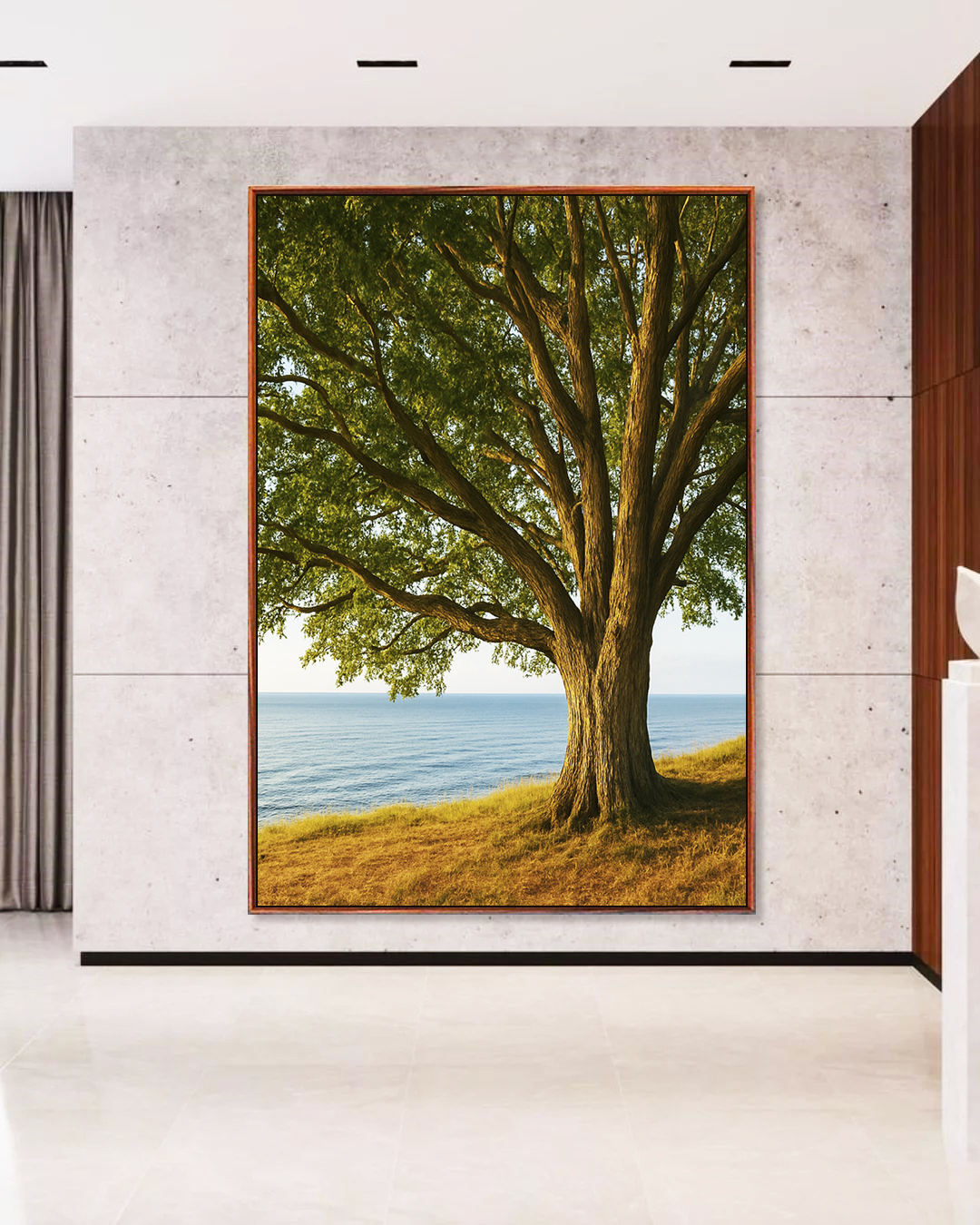 Com mar tranquilo e árvore em destaque, este Quadro Vertical traduz harmonia e contemplação. Ideal para salas, quartos ou halls de entrada, ele transforma o espaço com um toque natural, elegante e atemporal, perfeito para quem busca serenidade.