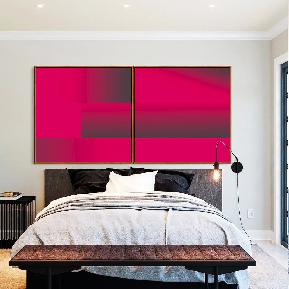 O equilíbrio entre arte e elegância define este Duo de Quadros Quadrados de estilo mosaico. Seu tom de Rosa em degradê e design geométrico são a escolha certa para compor salas, quartos ou halls de entrada com um toque moderno, delicado e inspirador.