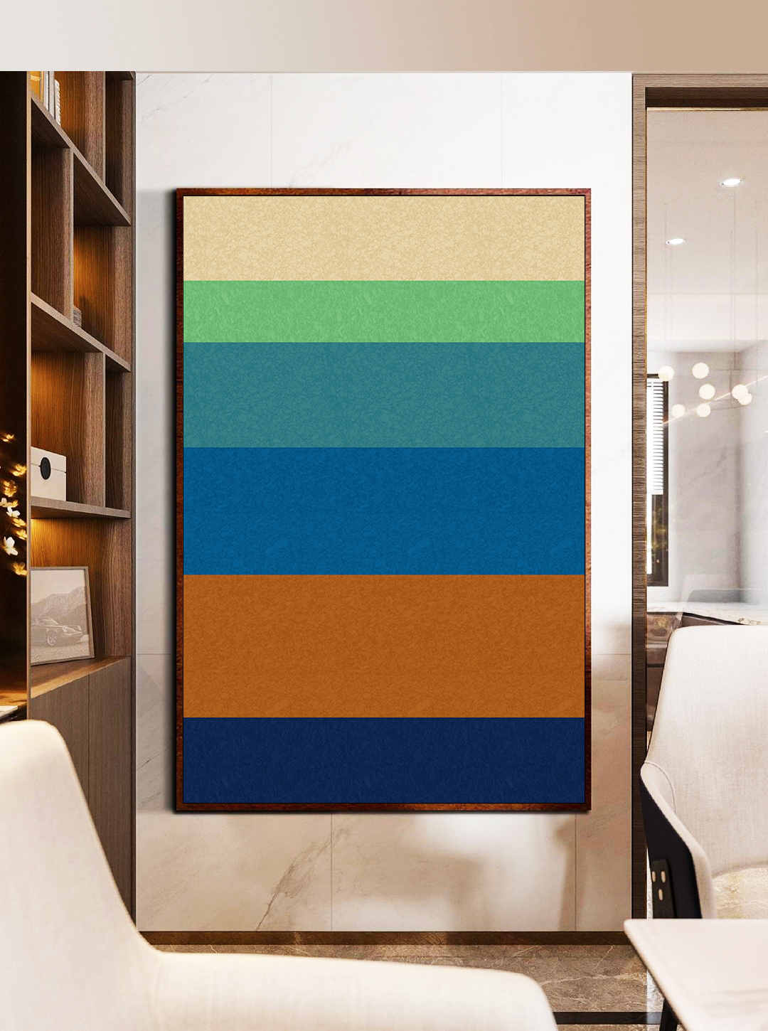 Quadro Vertical abstrato com listras em azul turquesa e laranja, criando movimento e personalidade na decoração. A escolha ideal para salas, quartos, escritórios ou halls de entrada, trazendo modernidade, energia visual e sofisticação.