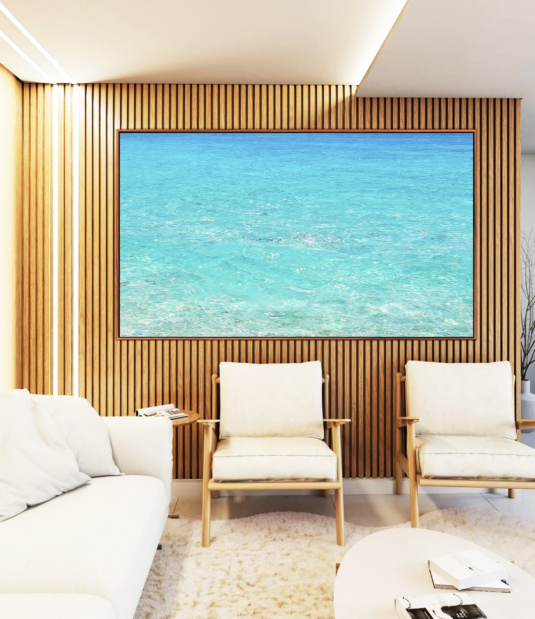 Mar azul de águas paradisíacas cria uma atmosfera de leveza e descanso visual. Ideal para salas, quartos e ambientes que buscam sensação de férias, tranquilidade e conexão com a natureza.