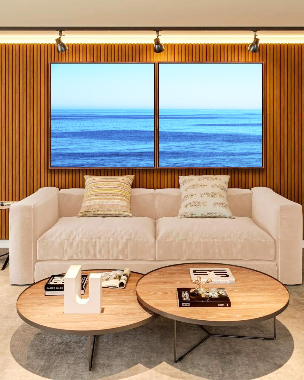 O Duo de Quadros Quadrados destaca o mar azul com ondulações suaves sob um céu claro, trazendo movimento e tranquilidade ao ambiente. A escolha ideal para decorar sua sala, quarto ou hall de entrada com a força serena e encantadora da natureza.
