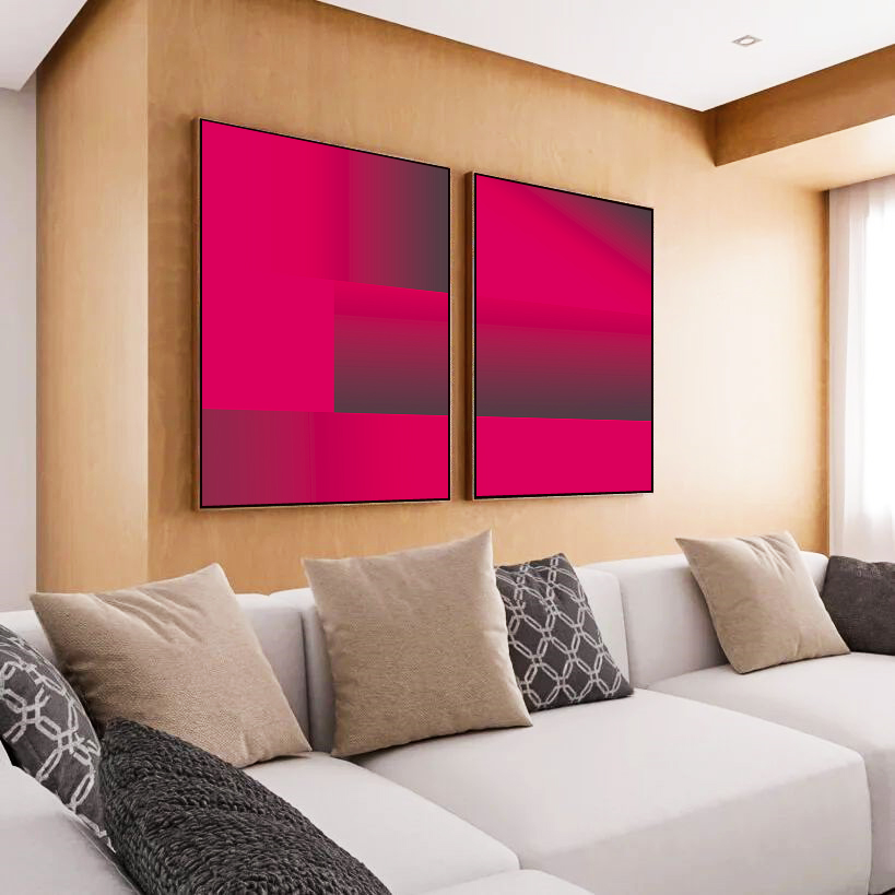 O equilíbrio entre arte e elegância define este Duo de Quadros de estilo mosaico. Seu tom de Rosa em degradê e design geométrico são a escolha certa para compor salas, quartos ou halls de entrada com um toque moderno, delicado e inspirador.