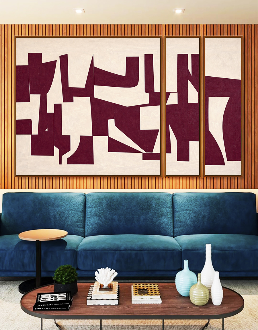 O contraste refinado entre vinho profundo e marfim suave transmite equilíbrio e modernidade. Perfeita para salas de estar, quartos e espaços com decoração contemporânea e elegante. Belíssimo!