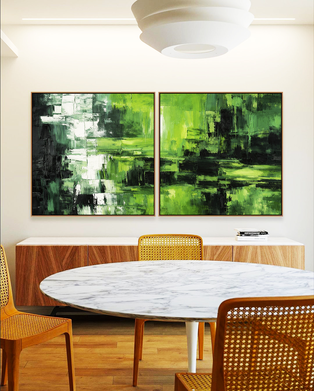 Abstrato em verde limão, branco e preto com contraste marcante e estilo moderno. Ideal para sala, quarto, escritório, consultório ou ambiente contemporâneo. Decoração vibrante, clean e elegante que traz destaque, energia e personalidade ao espaço.