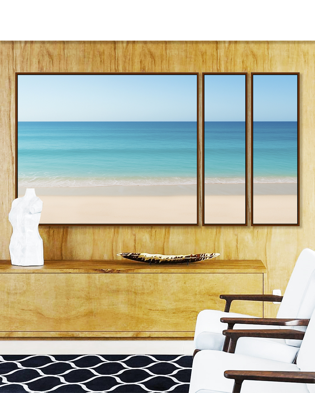 O mar azul e o céu límpido se unem neste Trio de Quadros Estilizados para criar uma sensação de paz e amplitude. Perfeito para decorar sua sala, quarto ou escritório com leveza e elegância atemporal. Lindo e de grande harmonia visual.