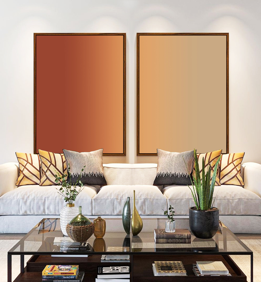 Duo de Quadros Abstrato Degrade Areia Cobre Terracota Canvas Moldura