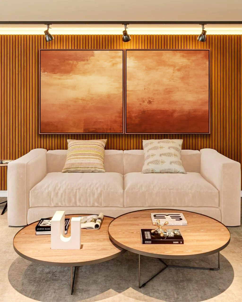 Duo de Quadros Quadrados abstratos em marrom terra, bronze e caramelo, com moldura extra fina flutuante que valoriza a arte. Ideal para decorar salas, escritórios ou quartos, oferecendo sofisticação, elegância e aconchego moderno. Lindíssimos!