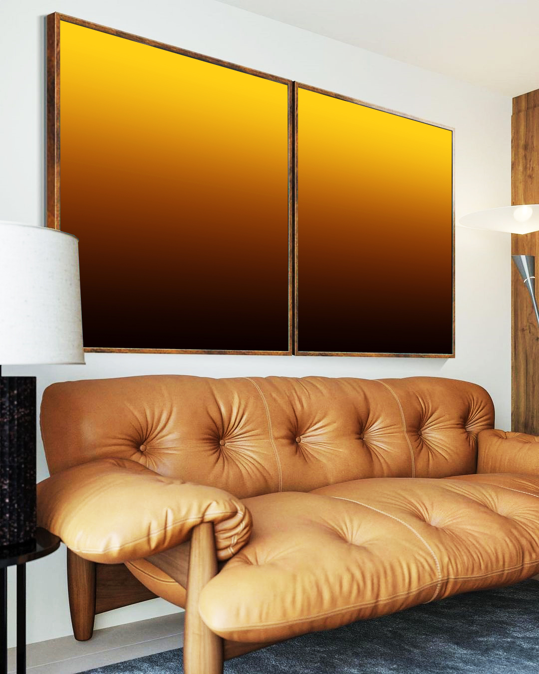 Este Duo de Quadros em nuances de amarelo e marrom traz aconchego e sofisticação ao espaço, criando um ponto de destaque refinado. Ideal para valorizar salas, quartos ou escritórios com arte moderna um degradê marcante e elegante.