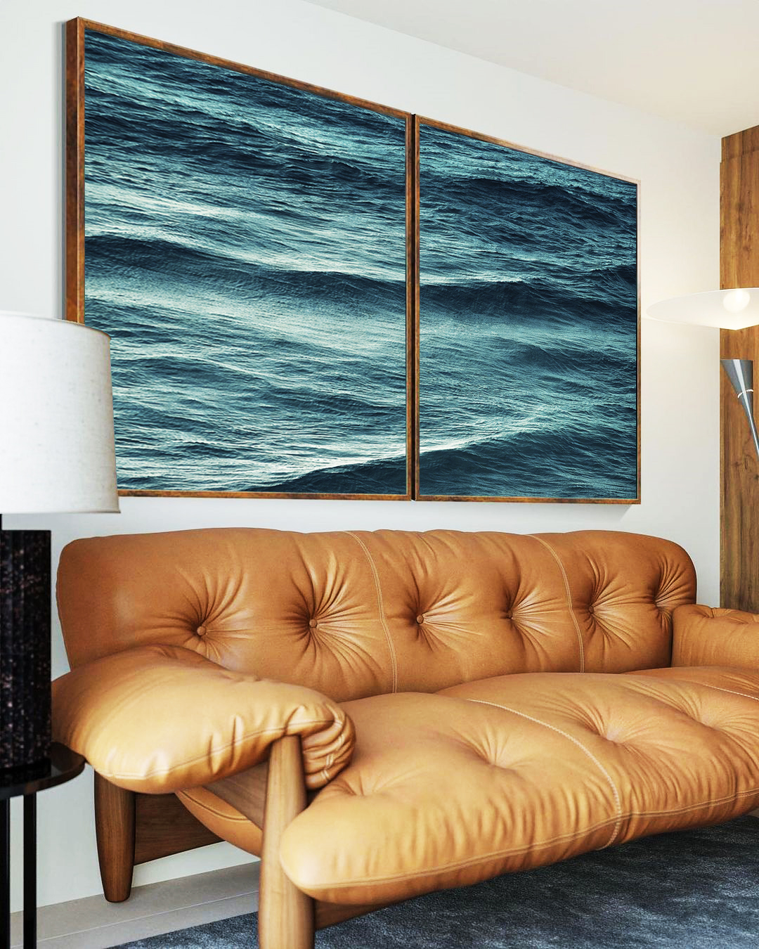 Imponente e sofisticado, este Duo de Quadros com alto mar azul turquesa ondulado transmite força, movimento e frescor natural ao ambiente. A escolha ideal para salas elegantes, quartos modernos ou halls de entrada imponentes.