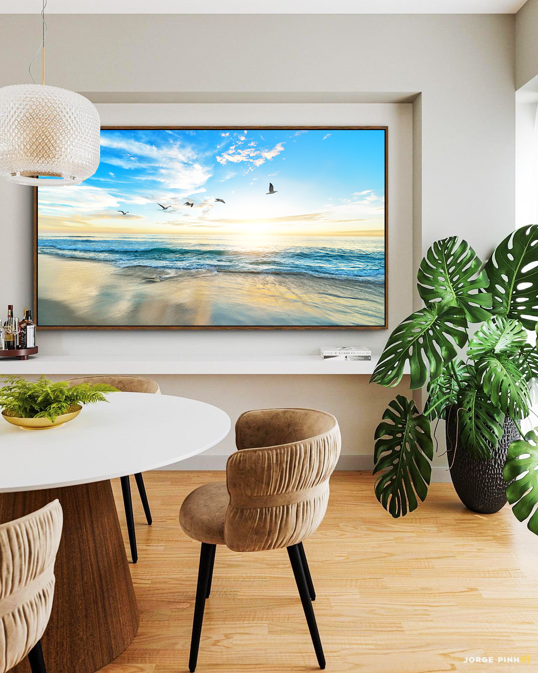 Leve a calmaria do Mar e o voo dos pássaros para sua decoração com este Quadro Horizontal de natureza. A escolha certa para sua Sala, Quarto ou Hall de entrada, unindo sofisticação e sensação de liberdade. Moldura Flutuante de Impacto Visual.