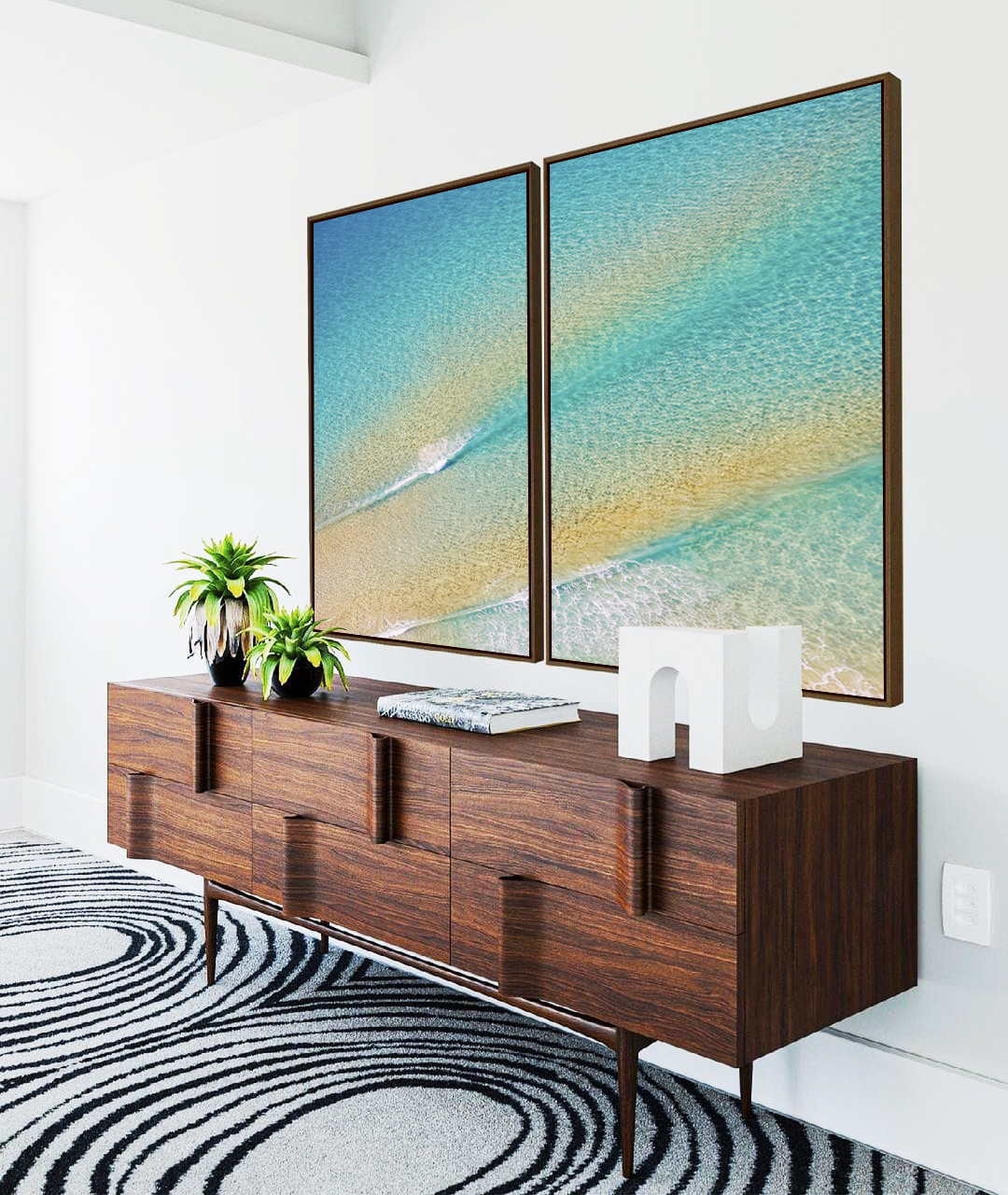 A beleza da praia em cores suaves transforma o ambiente em refúgio tropical. Perfeito para interiores modernos, casas de veraneio e Apartamentos aconchegantes. Lindo e Leve!
