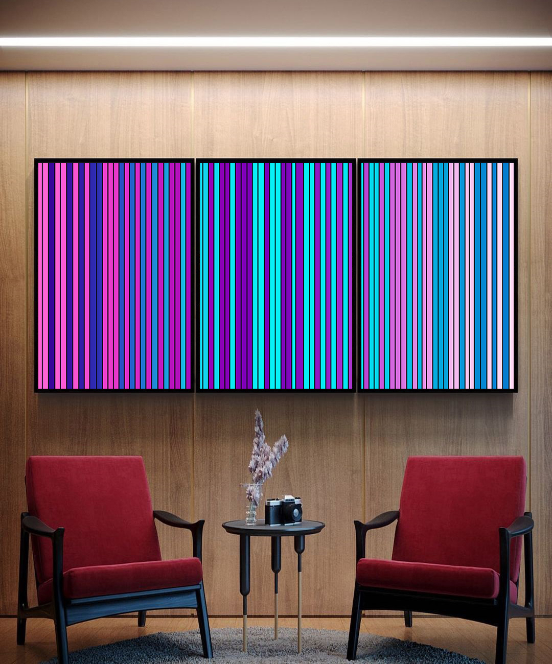 Com transições elegantes entre lilás, roxo, rosa e azul, este Trio de Quadros entrega harmonia e sofisticação. A escolha certa para destacar salas, quartos ou halls de entrada com uma arte abstrata que transmite calma, beleza e personalidade.