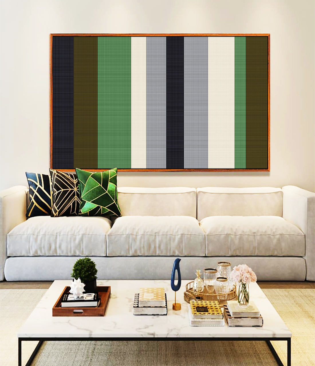 Com listras geométricas em tons de verde, cinza e branco, este Quadro Horizontal expressa equilíbrio e sofisticação. A escolha ideal para compor salas modernas, escritórios elegantes ou halls de entrada com personalidade e harmonia visual.