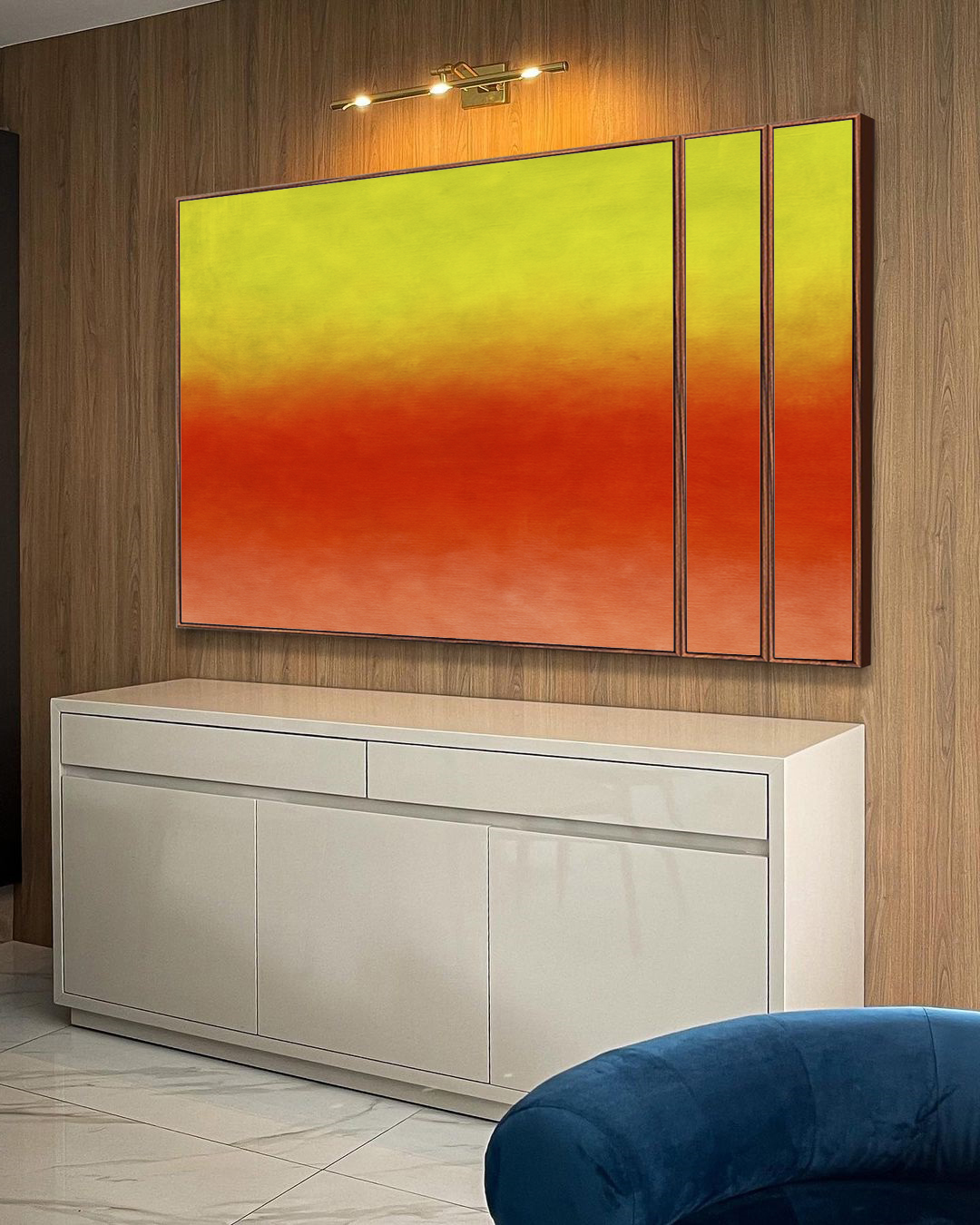 Com transições suaves entre verde-limão e laranja tangerina, este Trio de Quadros Estilizados traz leveza e energia ao ambiente. Ideal para realçar sua sala, quarto ou escritório, com moldura moderna e acabamento em canvas elegante. Impacto Visual!