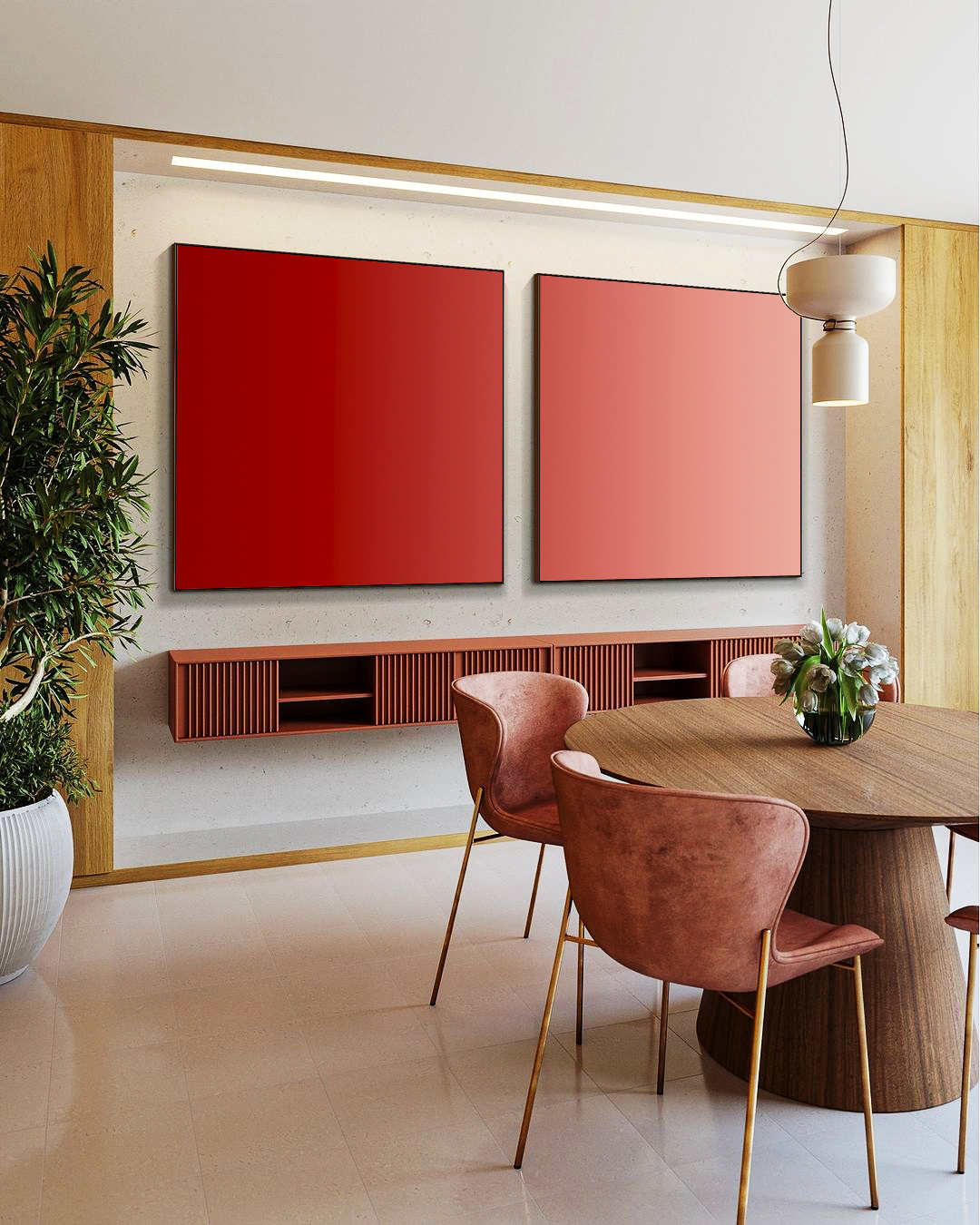Este Duo de Quadros Quadrados Abstrato em degradê vermelho, rosa e salmão une arte e sofisticação. A moldura extra fina flutuante valoriza o design contemporâneo, perfeito para dar vida a salas, escritórios e quartos elegantes e modernos.